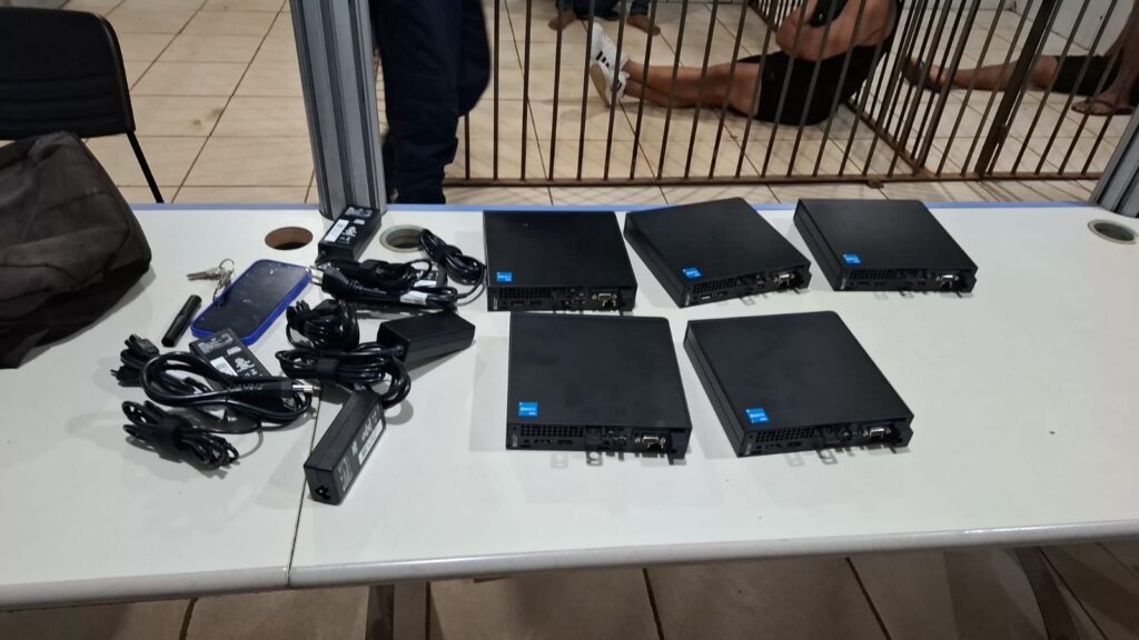 Além dos computadores, também foram encontradas fontes de alimentação compatíveis com os equipamentos furtados. Diante das evidências, o suspeito recebeu voz de prisão e foi encaminhado à Central de Polícia.
